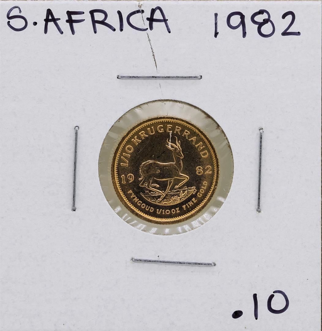 One 1982 South Africa Krugerrand 1/10 oz. Gold Coin.