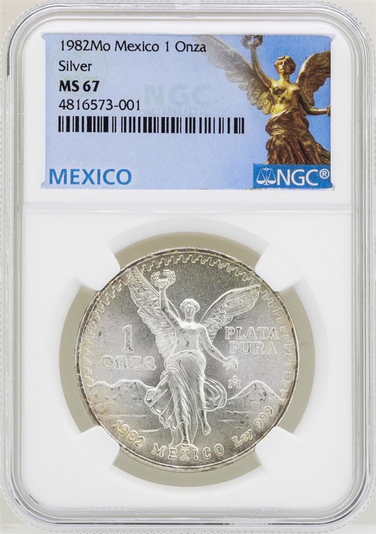 One 1982Mo Mexico Libertad Onza Silver Coins NGC MS67. NGC Certified.