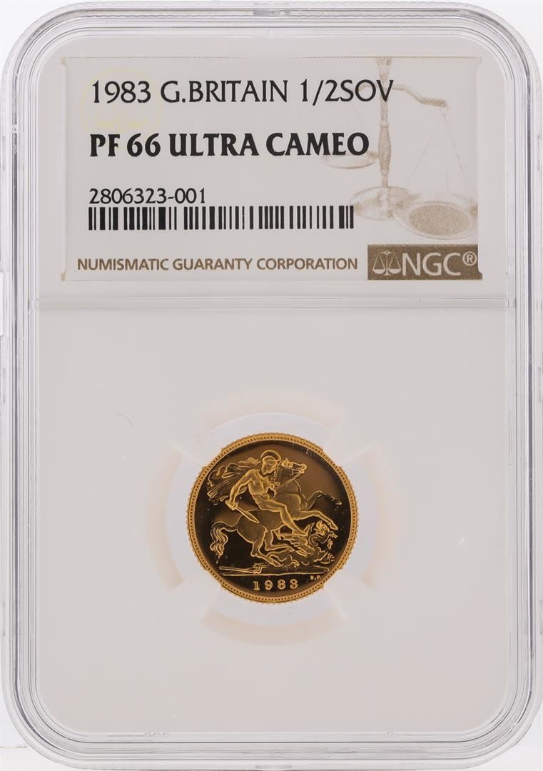 One 1983 1/2 Sovereign Great Britain Gold Coin NGC PF66 Ultra Cameo. NGC Certified.
