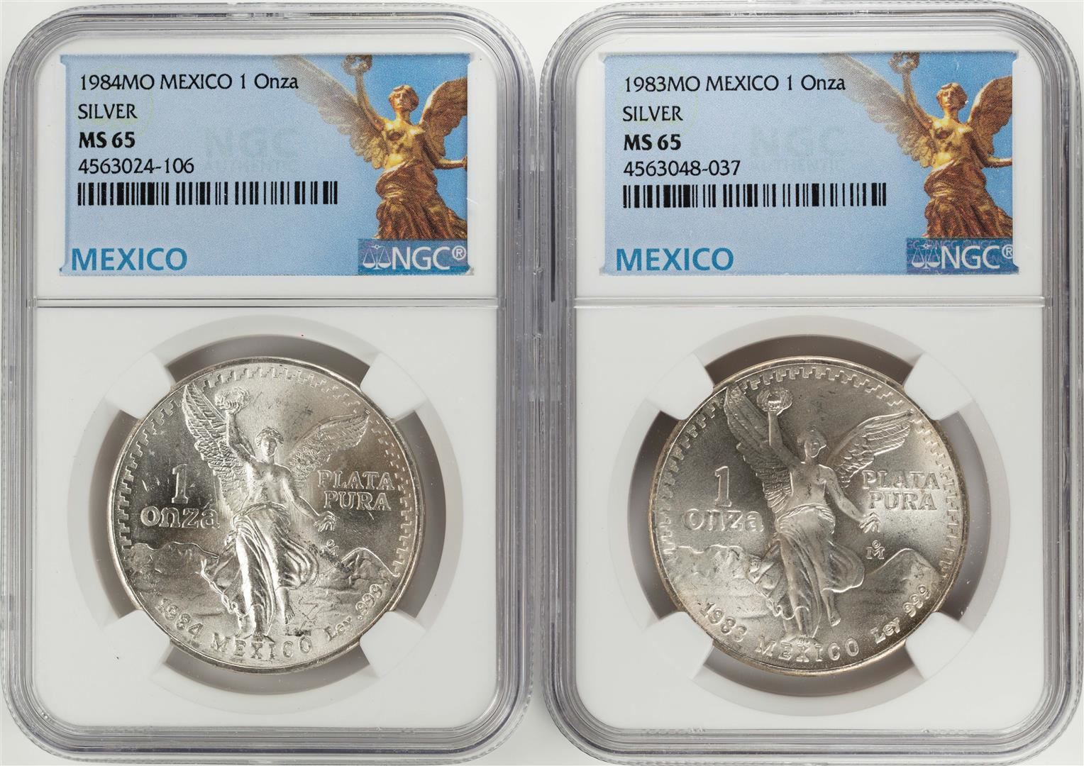 1983-1984Mo Mexico 1 Onza Libertad Silver Coins NGC MS65