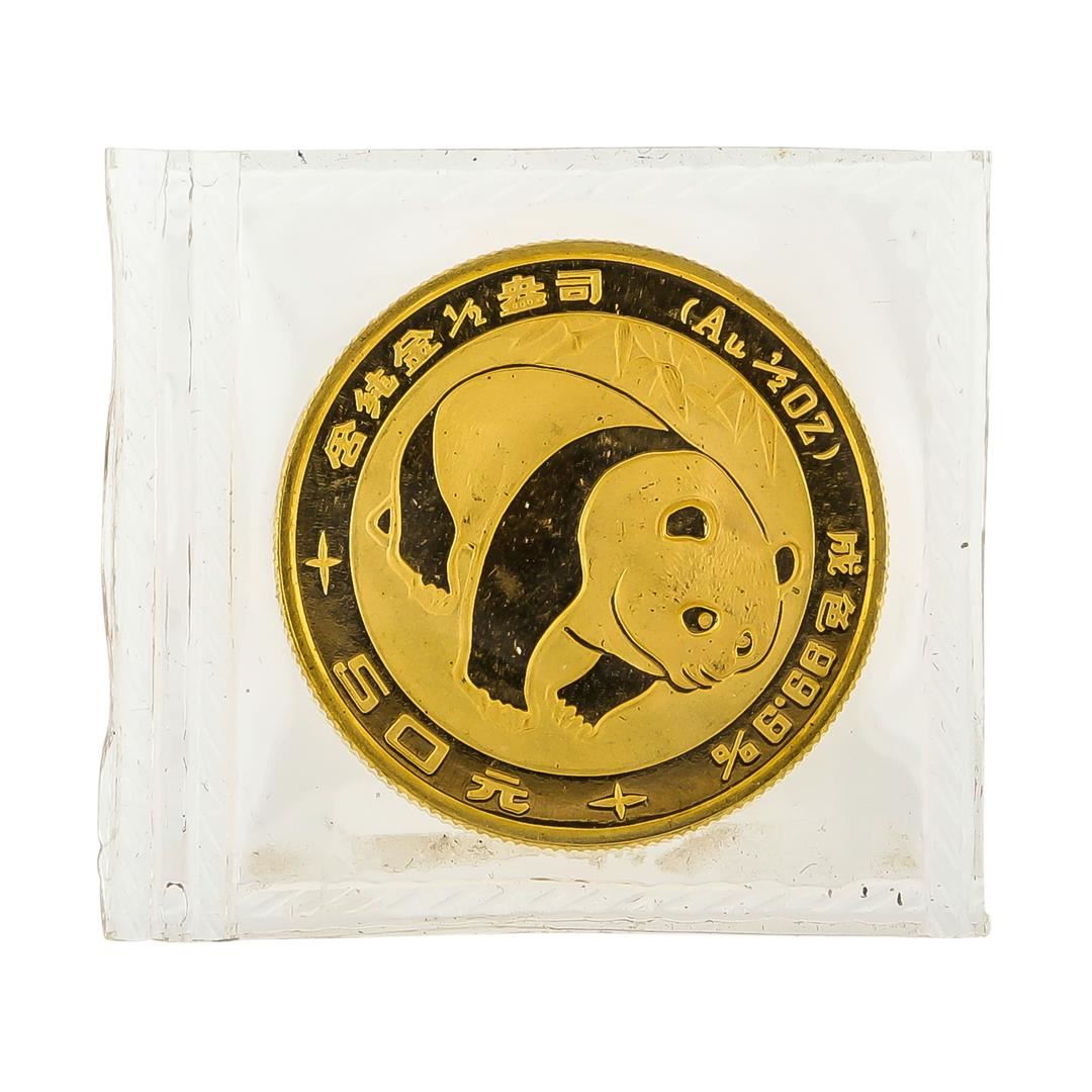 One 1983 China 1/2 Oz. Gold Panda Coin Sealed.