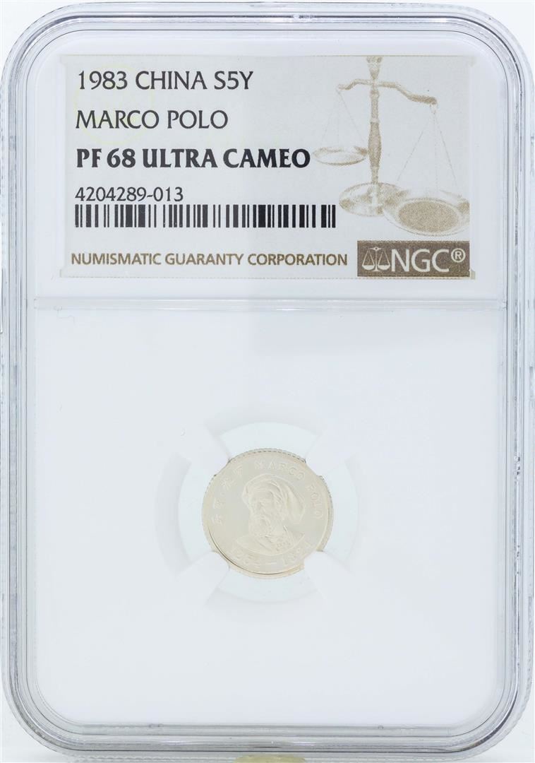 1983 China 5 Yuan Marco Polo Silver Proof Coin NGC PF68 Ultra Cameo