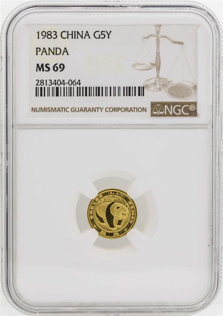 One 1983 China 5 Yuan Panda Gold Coin NGC MS69. NGC Certified.