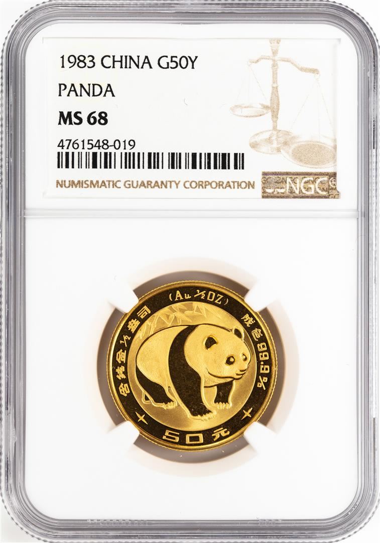 One 1983 China 50 Yuan Gold Panda Coin NGC MS68. NGC Certified.