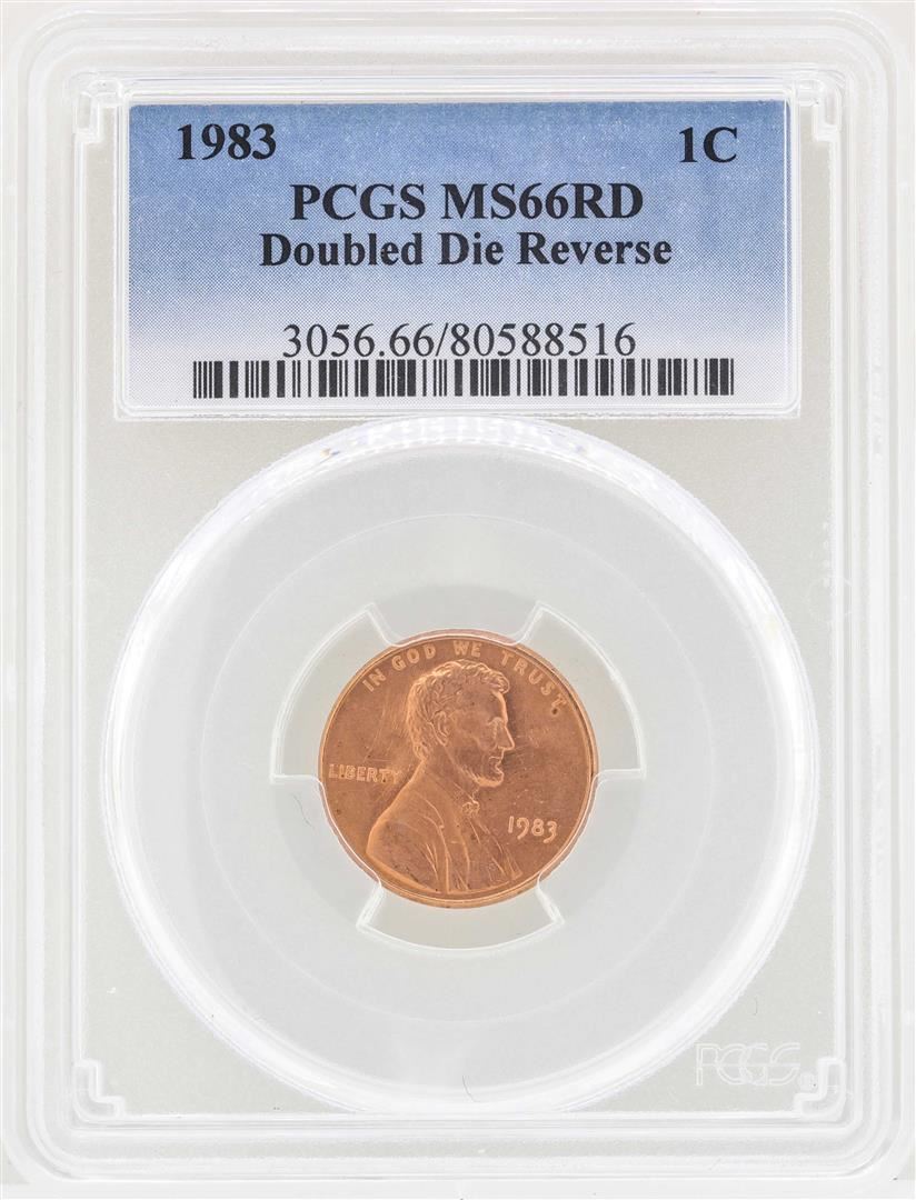 One 1983 Doubled Die Reverse Lincoln Cent Coin PCGS MS66RD. PCGS Graded.