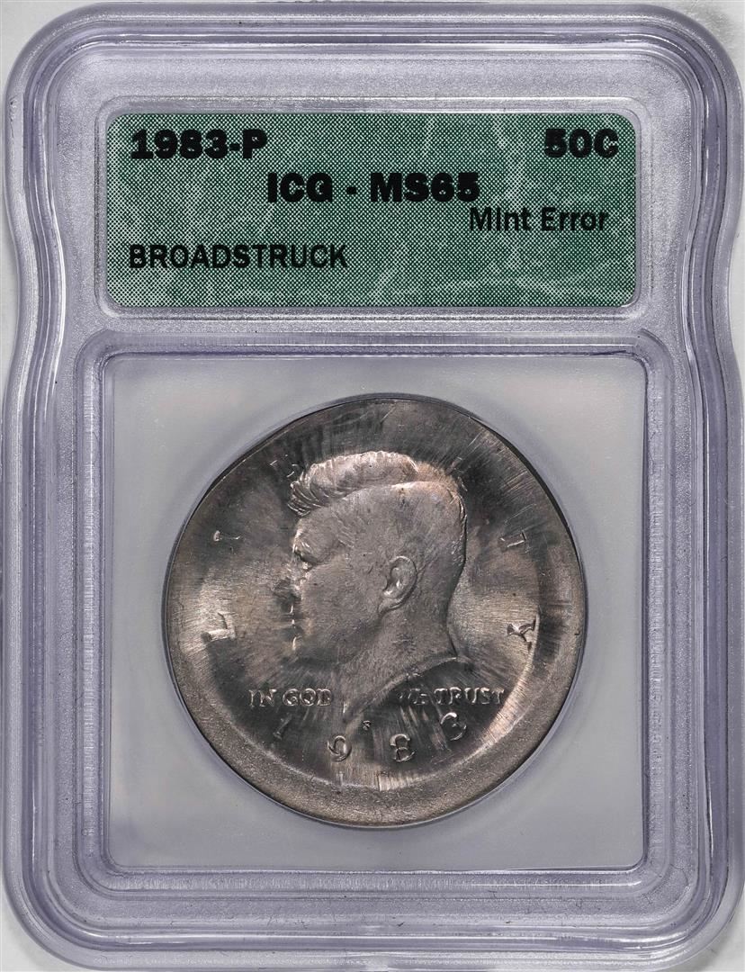 One 1983-P Kennedy Half Dollar Coin Mint ERROR Broadstruck ICG MS65. ICG Certified.