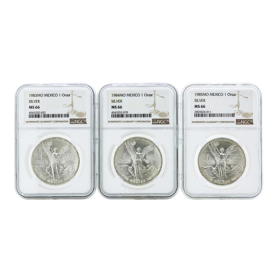 1983MO-1985MO Mexico 1 Onza Libertad Silver Coins NGC MS66