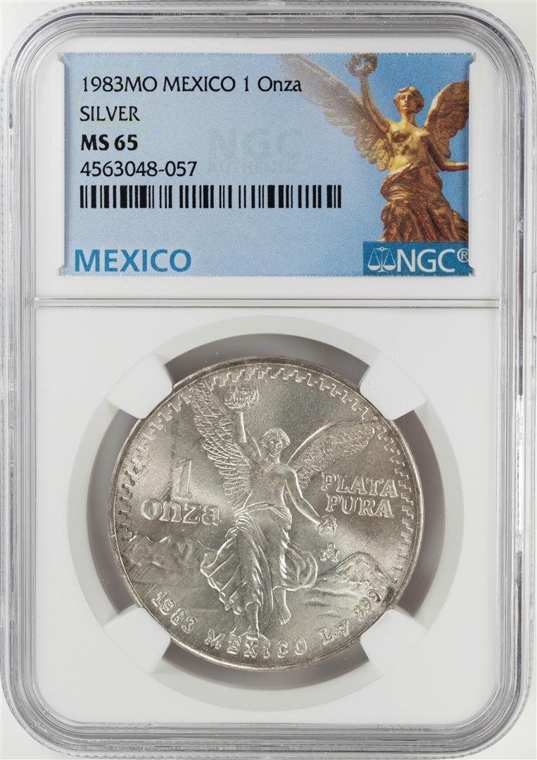 One 1983Mo Mexico 1 Onza Libertad Silver Coin NGC MS65. NGC Certified.