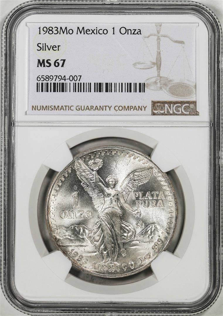 One 1983Mo Mexico 1 Onza Libertad Silver Coin NGC MS67. NGC Certified.