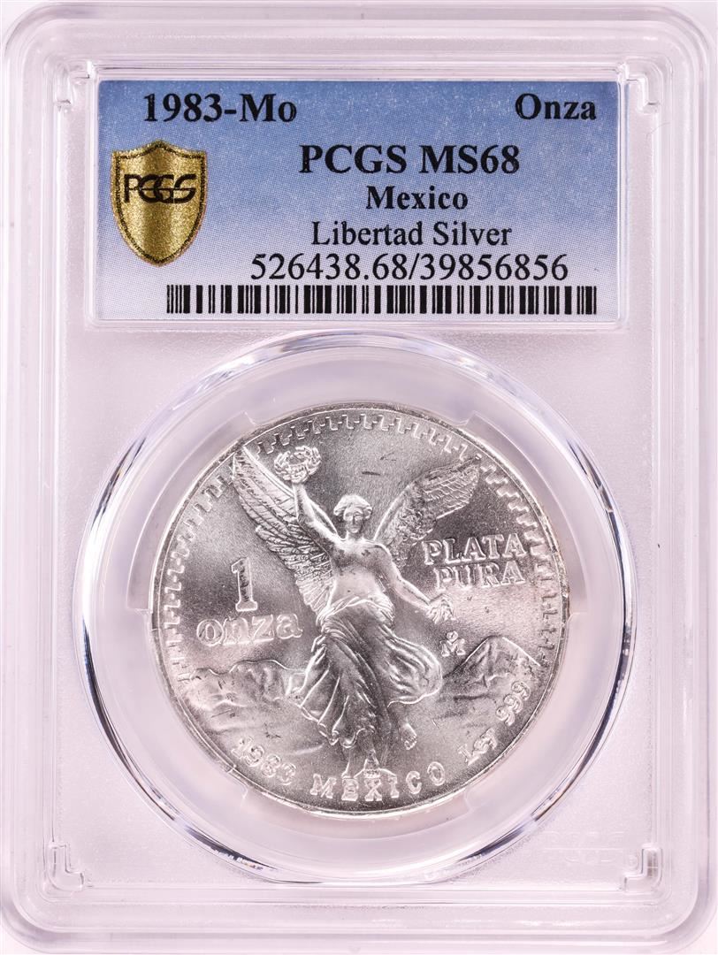 One 1983Mo Mexico 1 Onza Libertad Silver Coin NGC MS68.