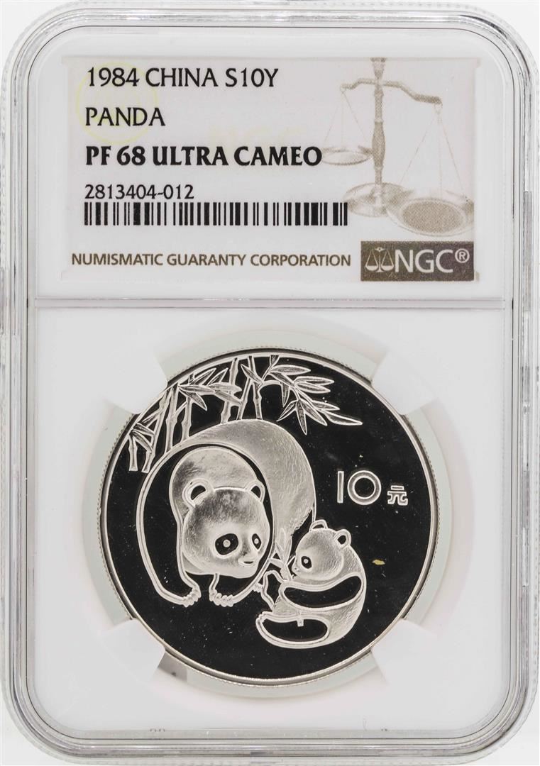 One 1984 China 10 Yuan Panda Silver Coin NGC PF68 Ultra Cameo. NGC Certified.
