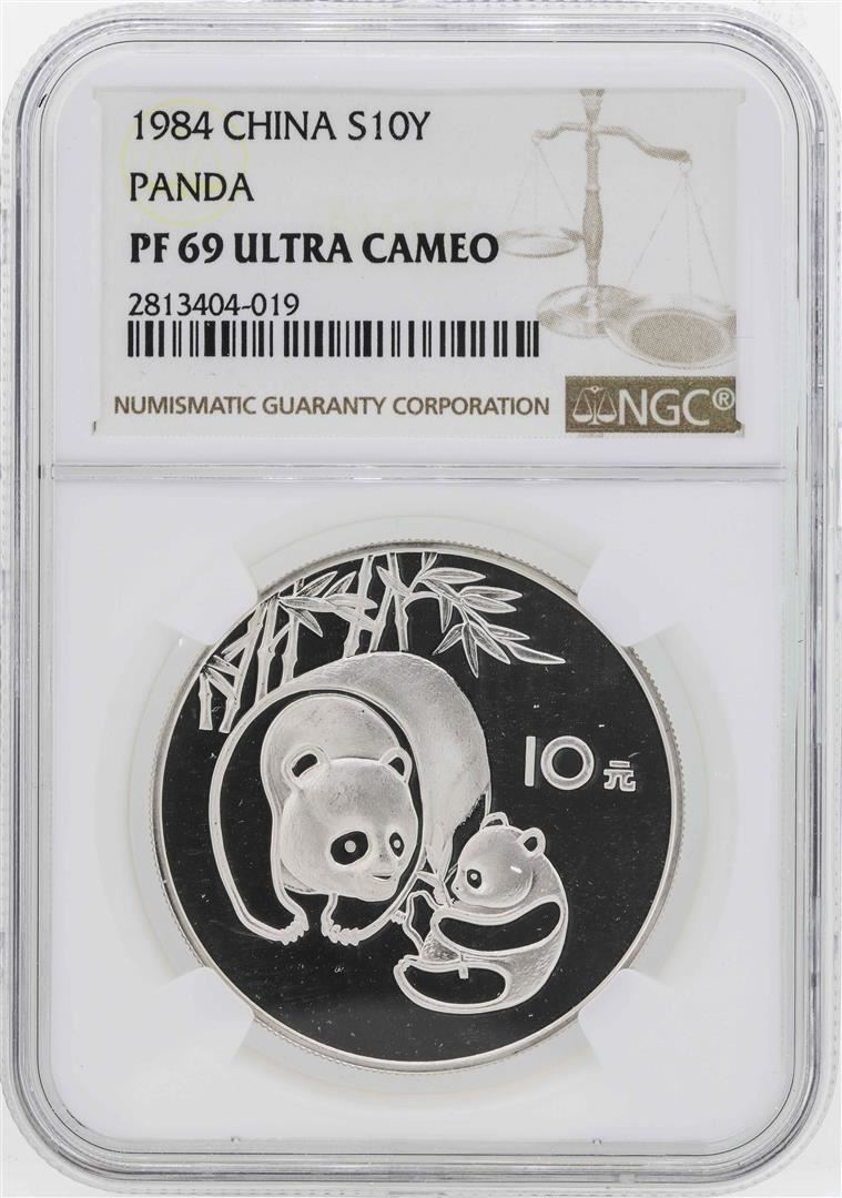 One 1984 China 10 Yuan Silver Panda Coin NGC PF69 Ultra Cameo. NGC Certified.