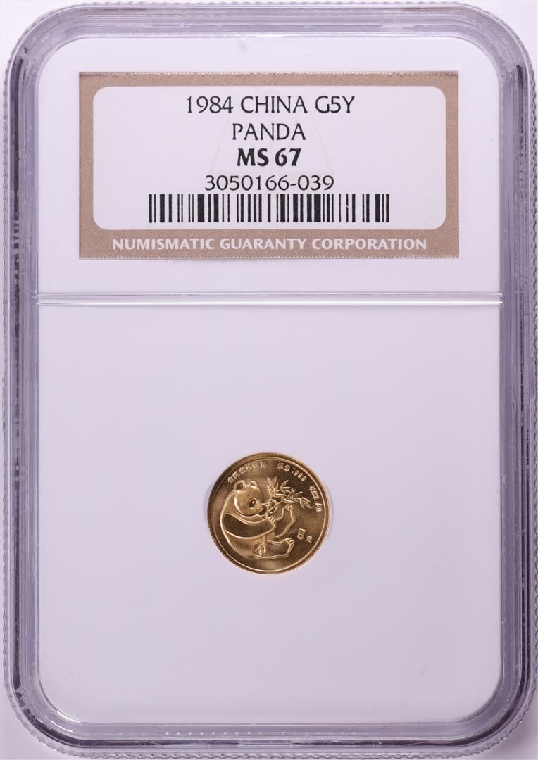 One 1984 China 5 Yuan Gold Panda Coin NGC MS67. NGC Certified.