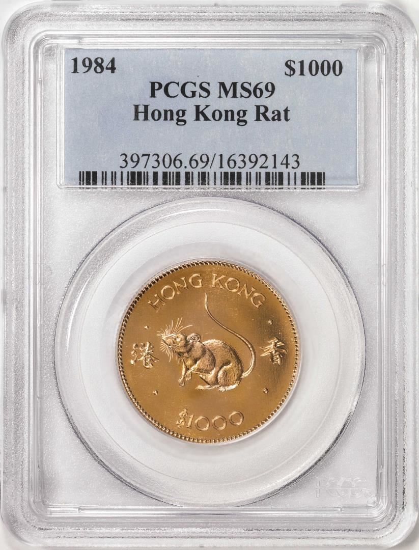 One 1984 Hong Kong $1000 Rat Gold Coin PCGS MS69. PCGS Graded.