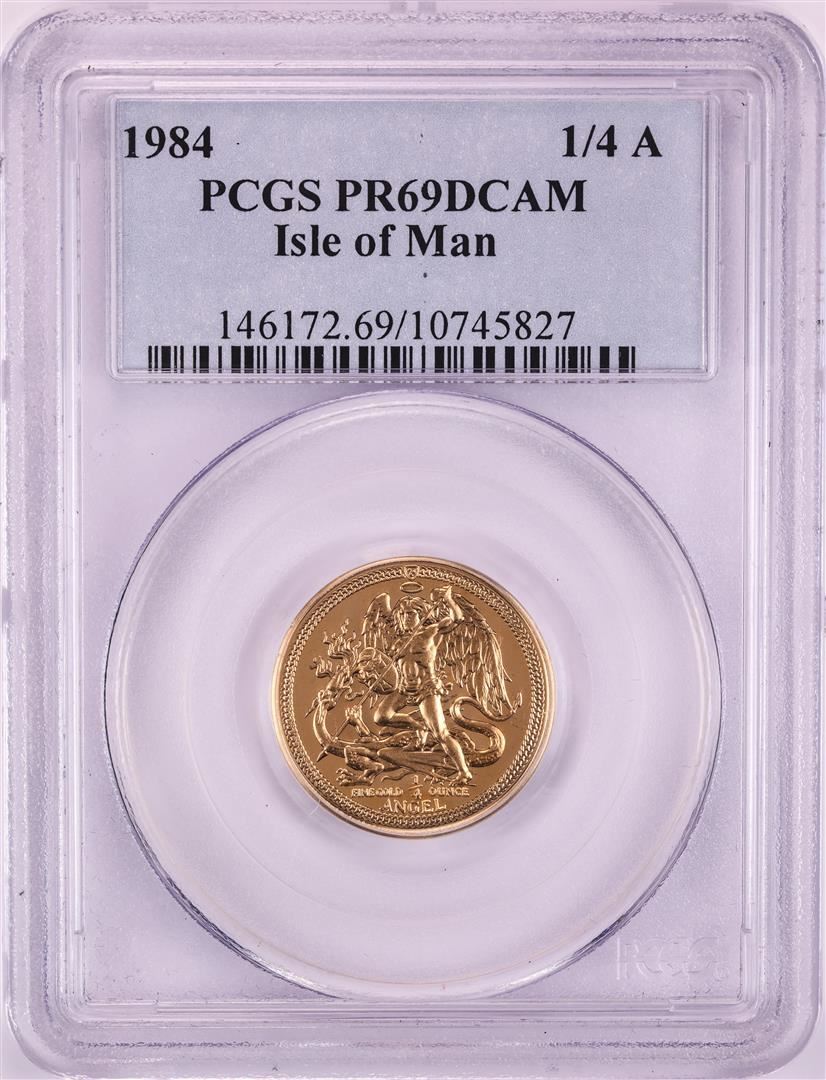 One 1984 Proof 1/4 oz Isle of Man Angel Gold Coin PCGS PR69DCAM. PCGS Graded.