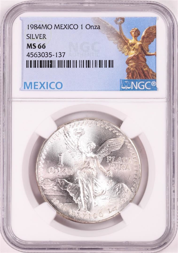 One 1984Mo Mexico 1 Onza Libertad Silver Coin NGC MS66. NGC Certified.