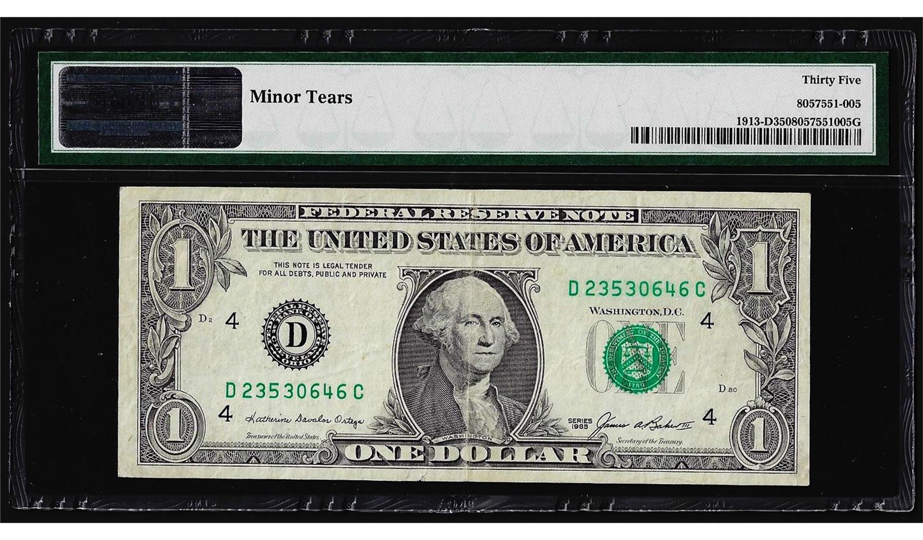 1985 $1 Federal Reserve Note Board Break ERROR PMG Choice Very Fine 35