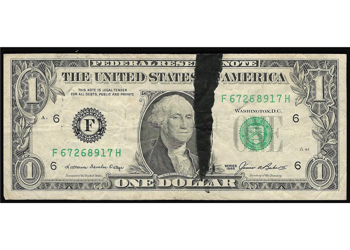 One 1985 $1 Federal Reserve Note Ink Smear ERROR.