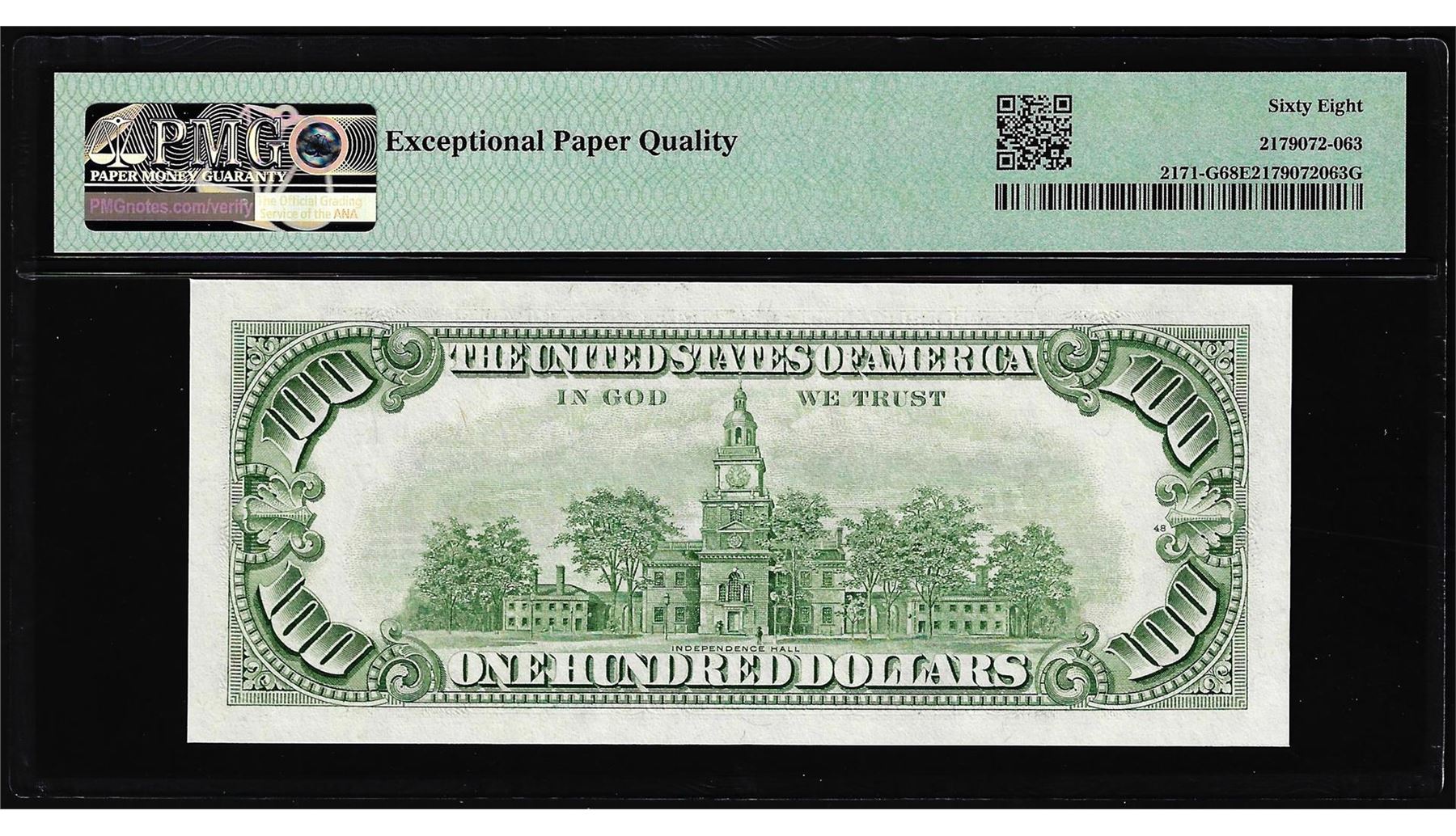 1985 $100 Federal Reserve Note Chicago Fr.2171-G PMG Superb Gem Uncirculated 68EPQ