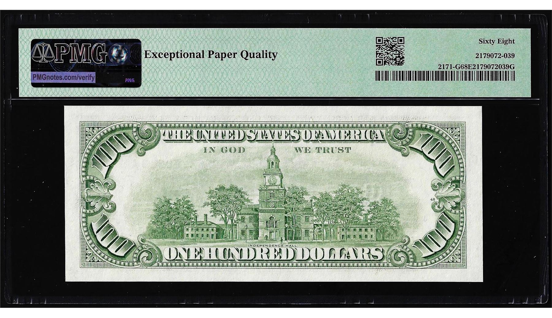 1985 $100 Federal Reserve Note Chicago Fr.2171-G PMG Superb Gem Uncirculated 68EPQ