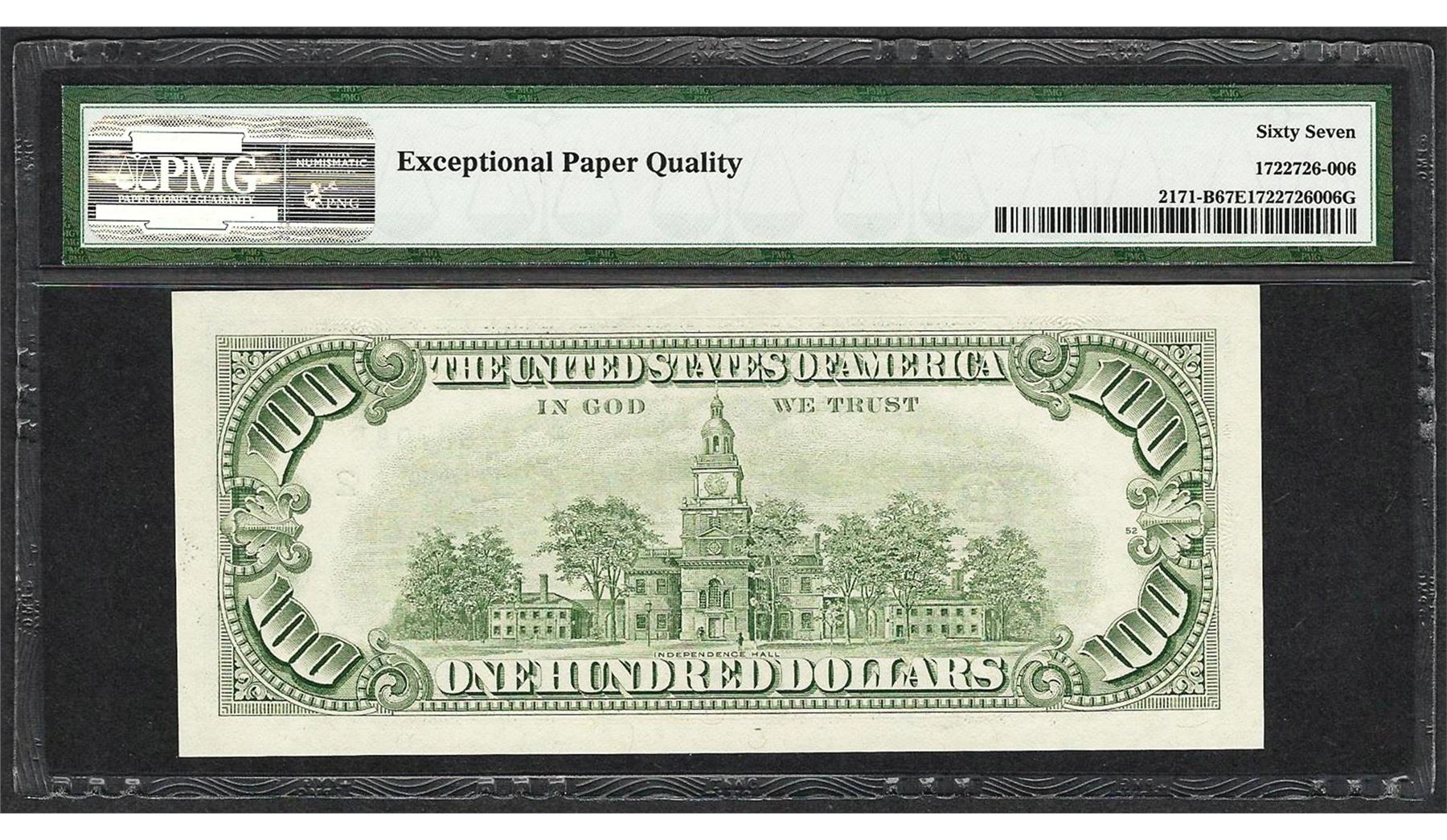 One 1985 $100 Federal Reserve Note New York Fr.2171-B PMG Superb Gem Unc 67EPQ. PMG Certified.