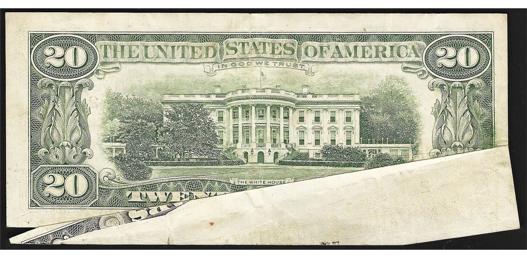 1985 $20 Federal Reserve Note Large Gutter Fold Over ERROR