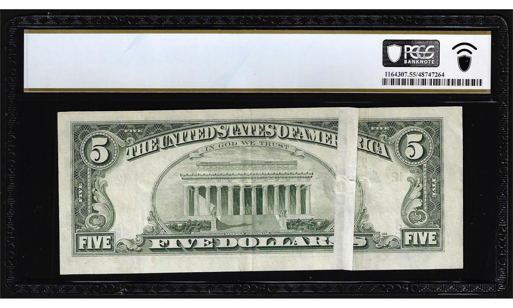 1985 $5 Federal Reserve Note San Francisco Gutter Fold Error PCGS About Unc 55