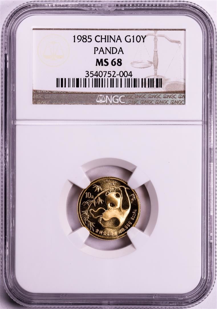 One 1985 China 10 Yuan Gold Panda Coin NGC MS68. NGC Certified.