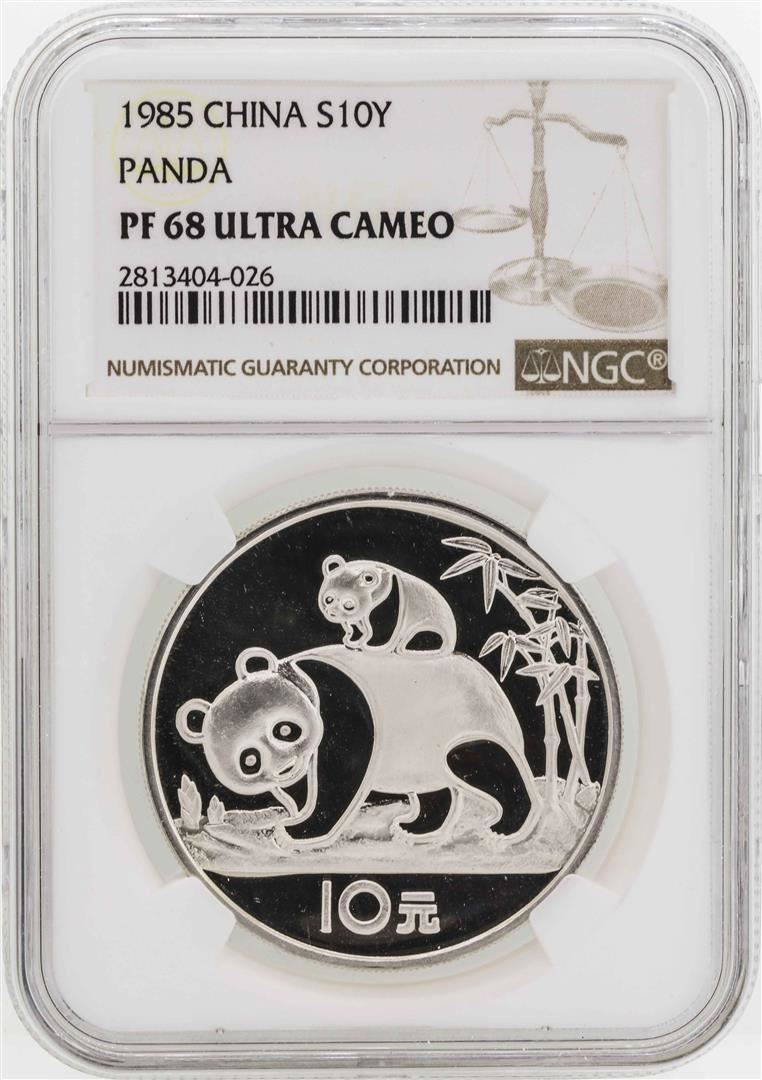 One 1985 China 10 Yuan Panda Silver Coin NGC PF68 Ultra Cameo. NGC Certified.
