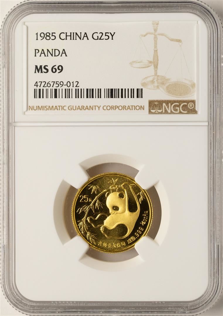 One 1985 China 25 Yuan Panda 1/4 oz. Gold Coin NGC MS69. NGC Certified.