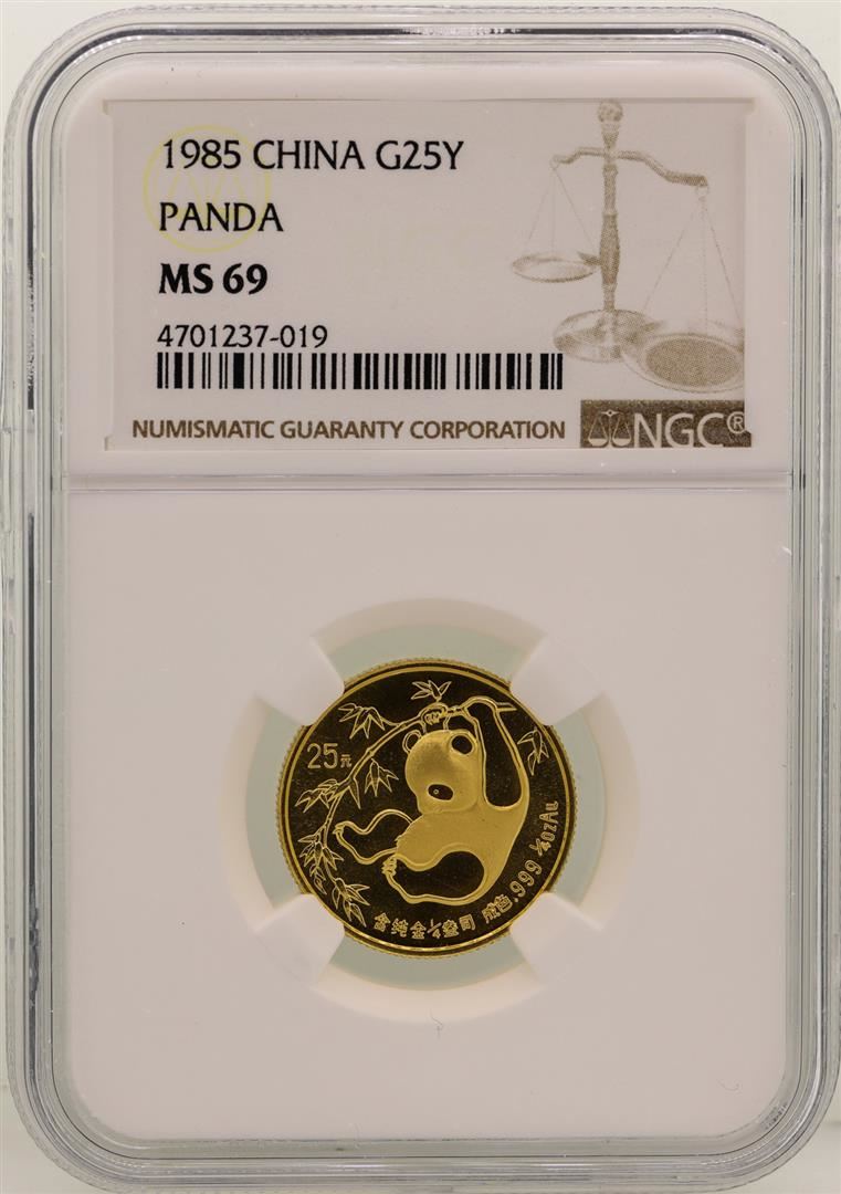 One 1985 China 25 Yuan Panda Gold Coin NGC MS69. NGC Certified.