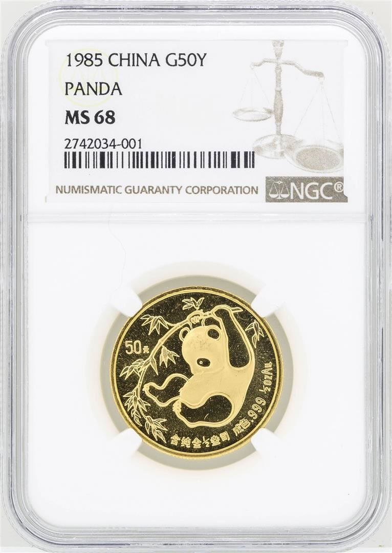 One 1985 China 50 Yuan Gold Panda Coin NGC MS68. NGC Certified.