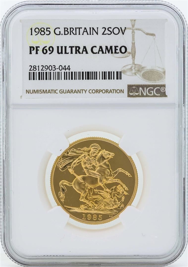 1985 Great Britain 2 Sovereign Gold Coin NGC PF69 Ultra Cameo