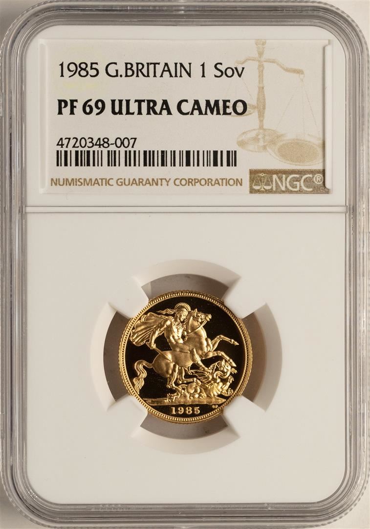 One 1985 Great Britain Sovereign Gold Coin NGC PF69 Ultra Cameo. NGC Certified.
