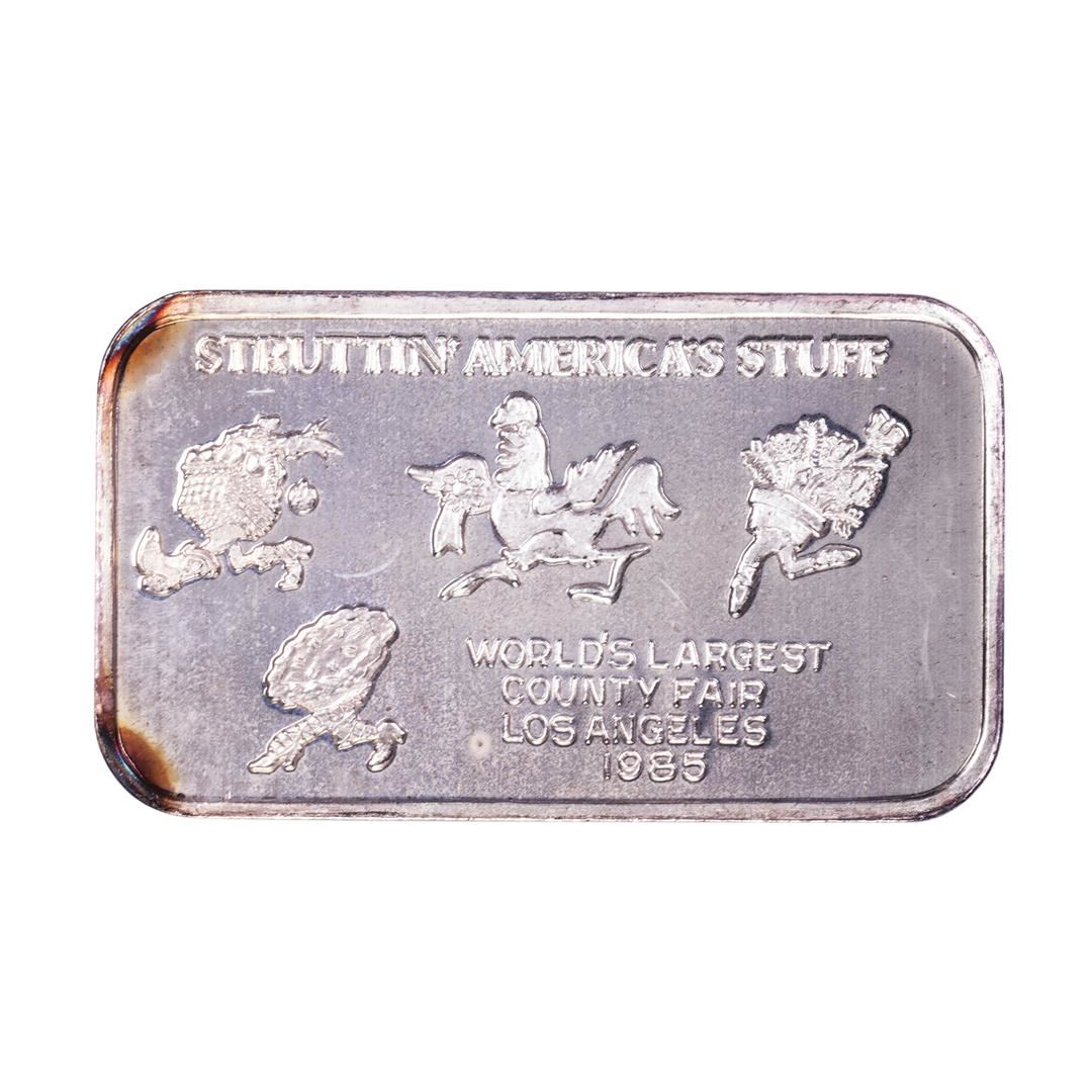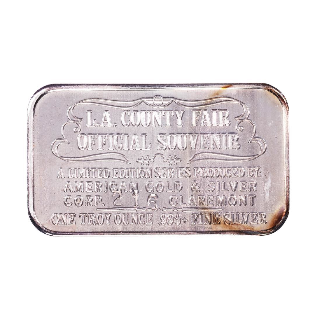 One 1985 L.A. County Fair Clairmont, CA Limited Edition 1oz .999 Fine Silver Art Bar.
