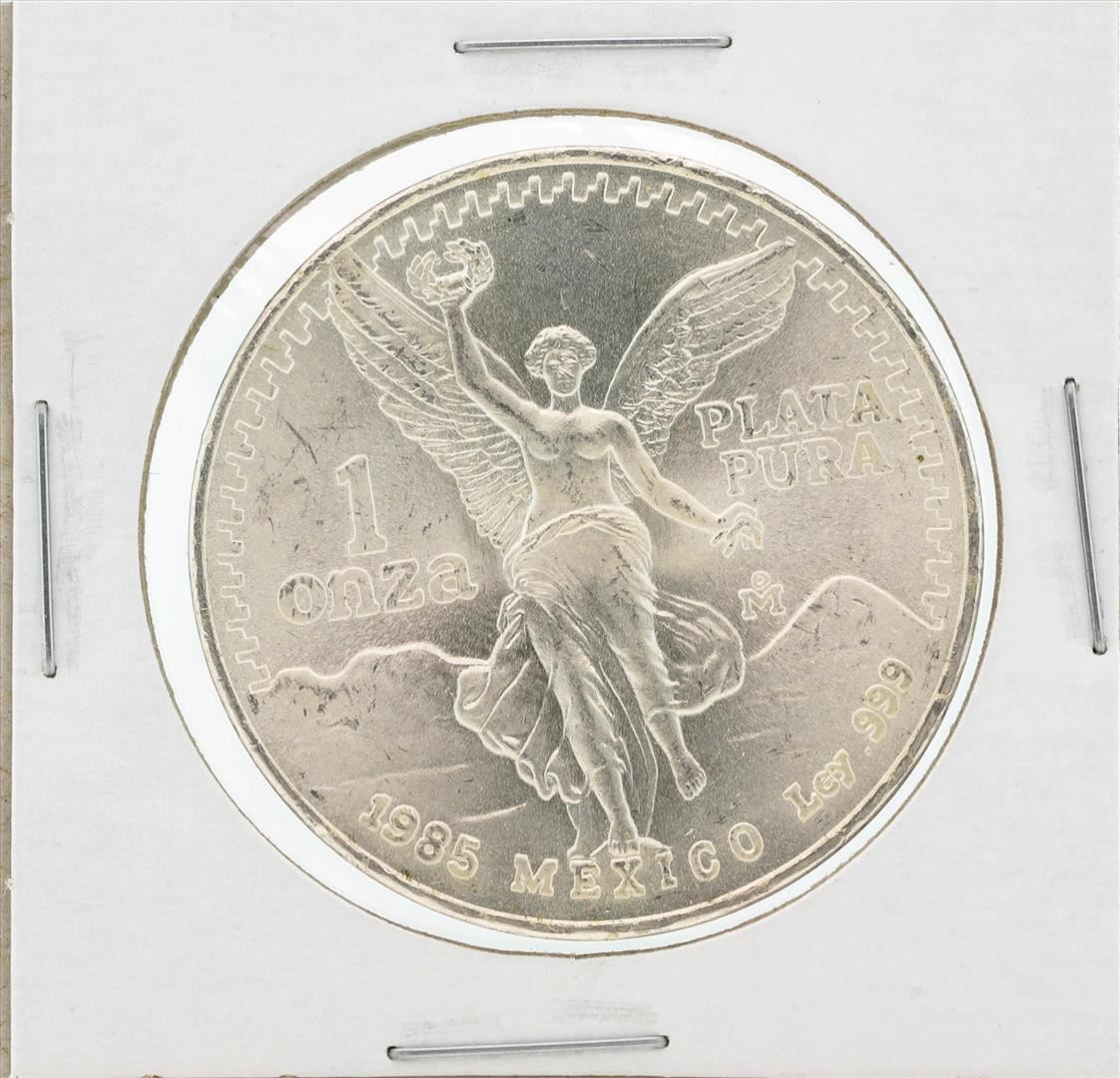 One 1985 Mexcian Libertad 1 Onza Silver Coin.