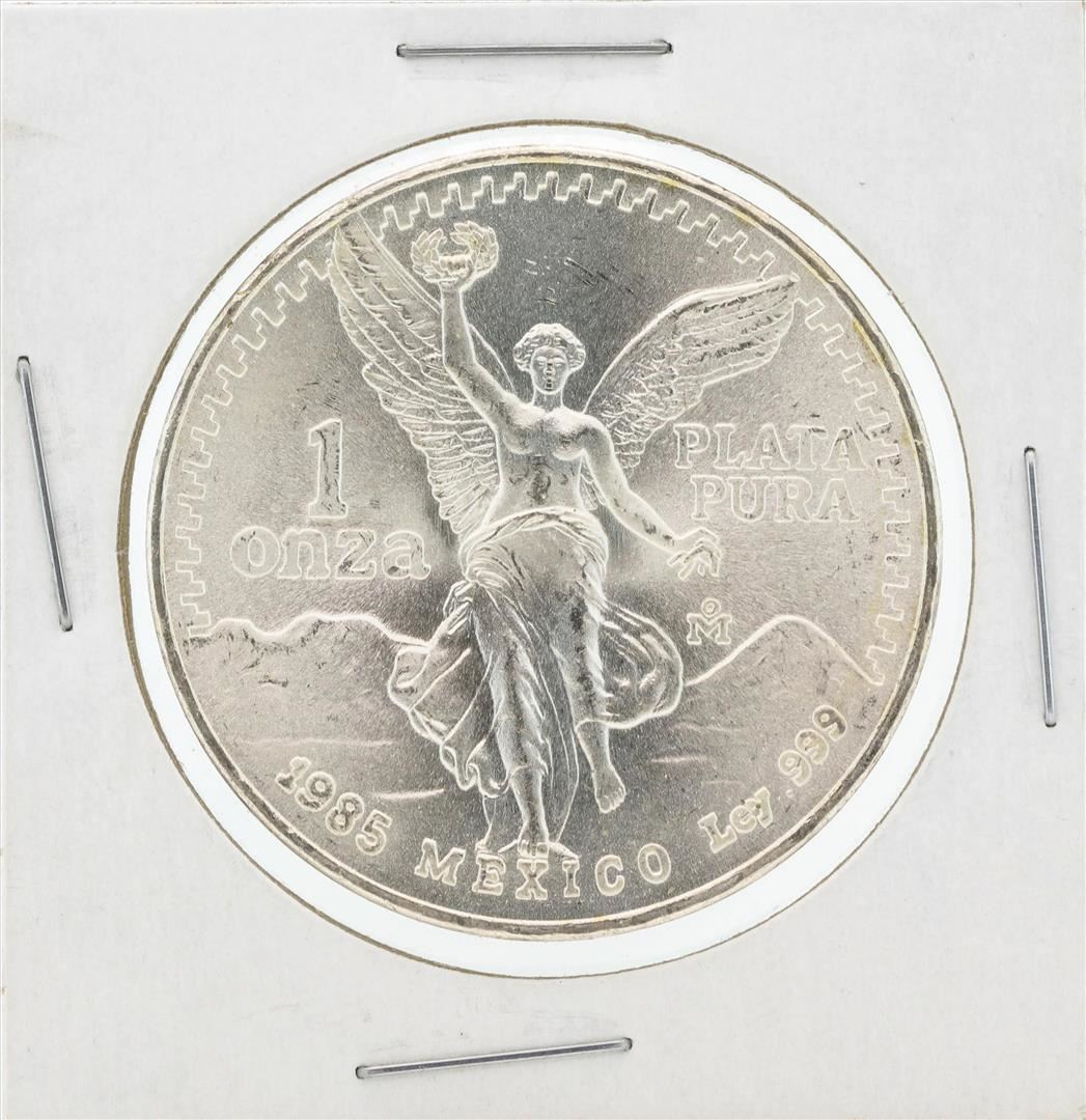 One 1985 Mexcian Libertad 1 Onza Silver Coin.
