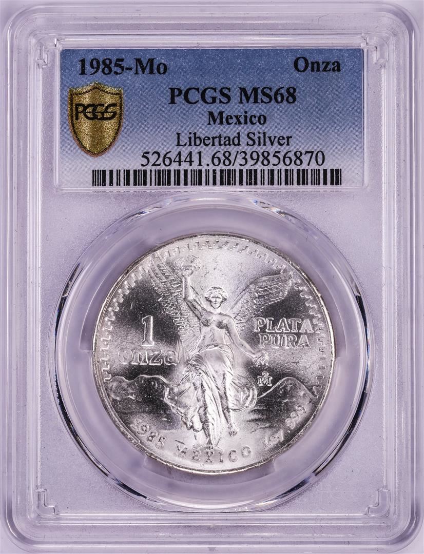 One 1985-Mo Mexico Onza Libertad Silver Coin PCGS MS68. PCGS Graded.