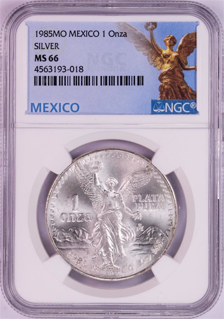 One 1985Mo Mexico 1 Onza Libertad Silver Coin NGC MS66. NGC Certified.