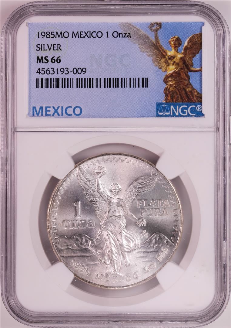 One 1985Mo Mexico 1 Onza Libertad Silver Coin NGC MS66. NGC Certified.