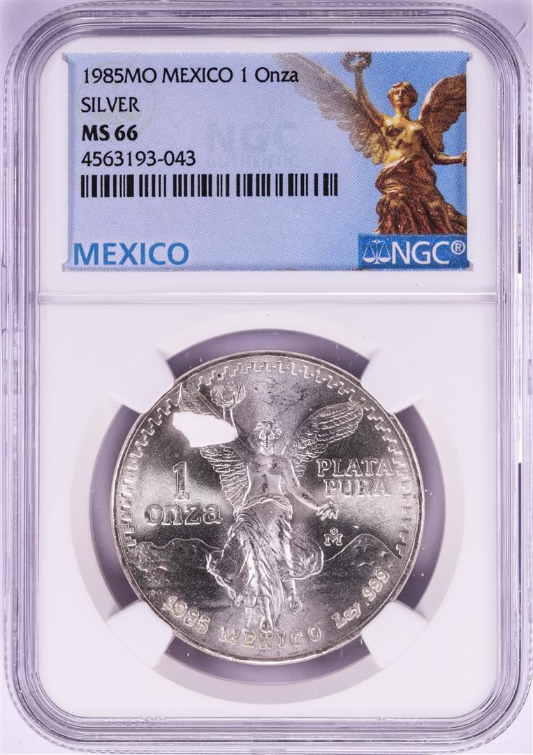 One 1985Mo Mexico 1 Onza Libertad Silver Coin NGC MS66. NGC Certified.