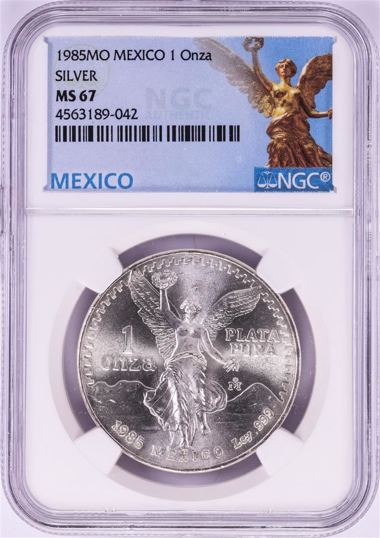One 1985Mo Mexico 1 Onza Libertad Silver Coin NGC MS67. NGC Certified.