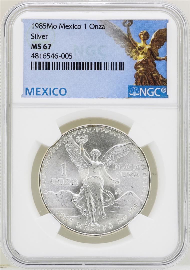 One 1985Mo Mexico Libertad Onza Silver Coins NGC MS67. NGC Certified.