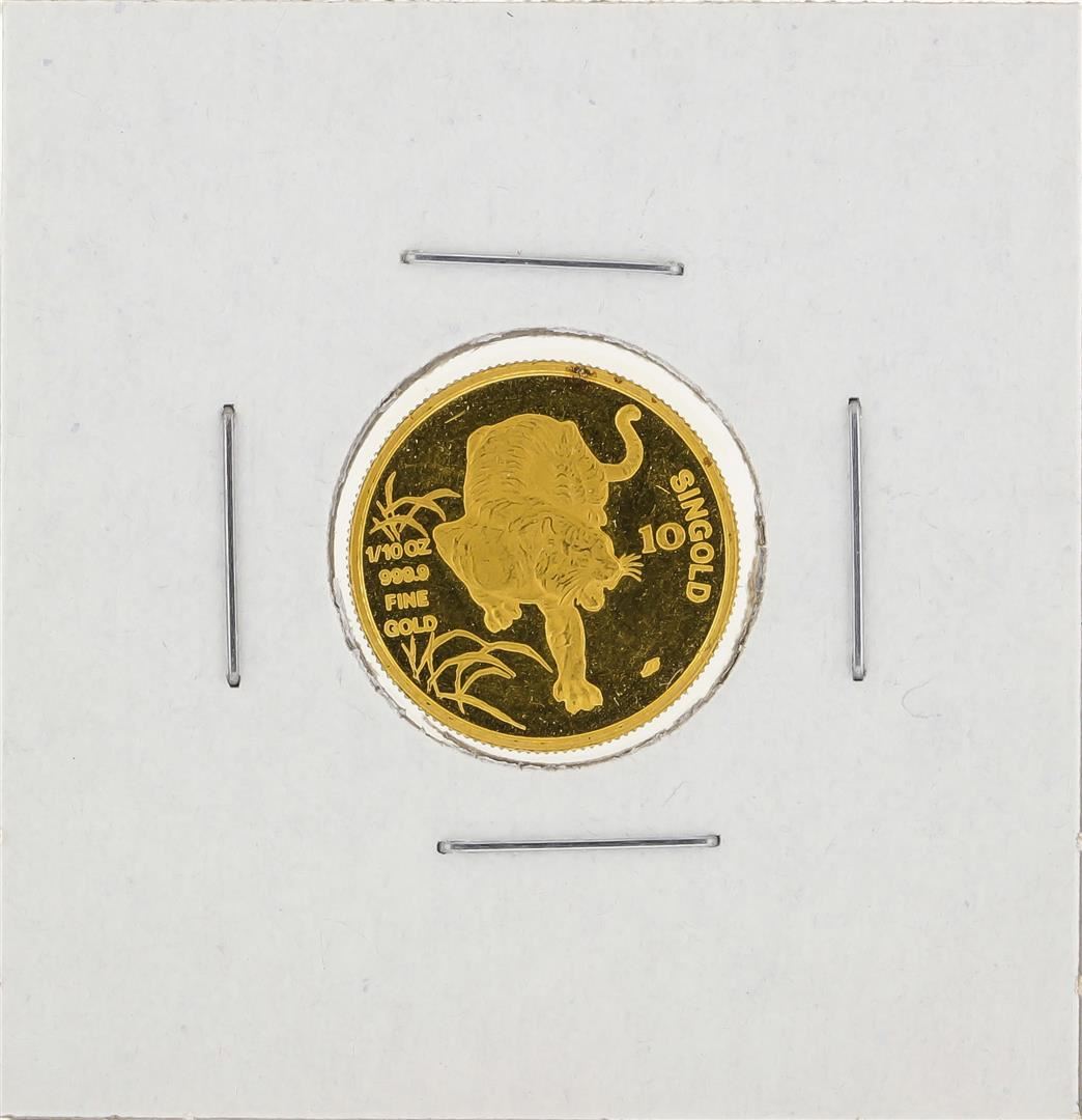 One 1986 1/10 oz Singold Singapore Tiger Gold Coin.