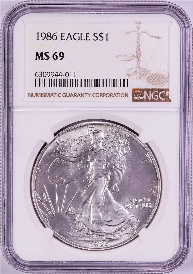 One 1986 $1 American Silver Eagle Coin NGC MS69. NGC Certified.