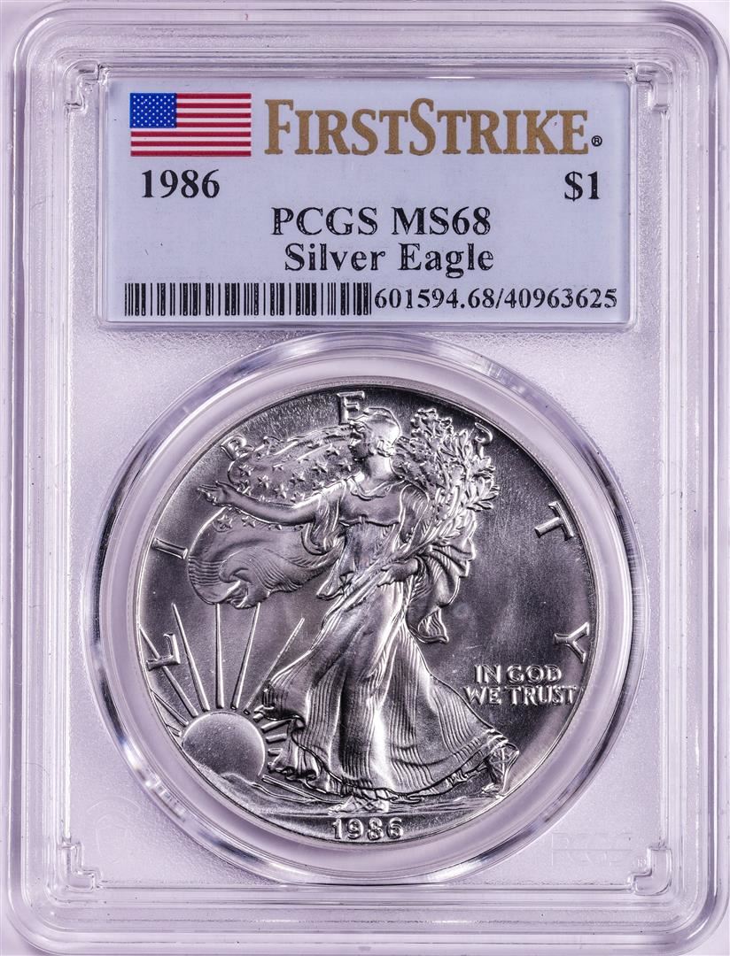 1986 $1 American Silver Eagle Coin PCGS MS68 First Strike