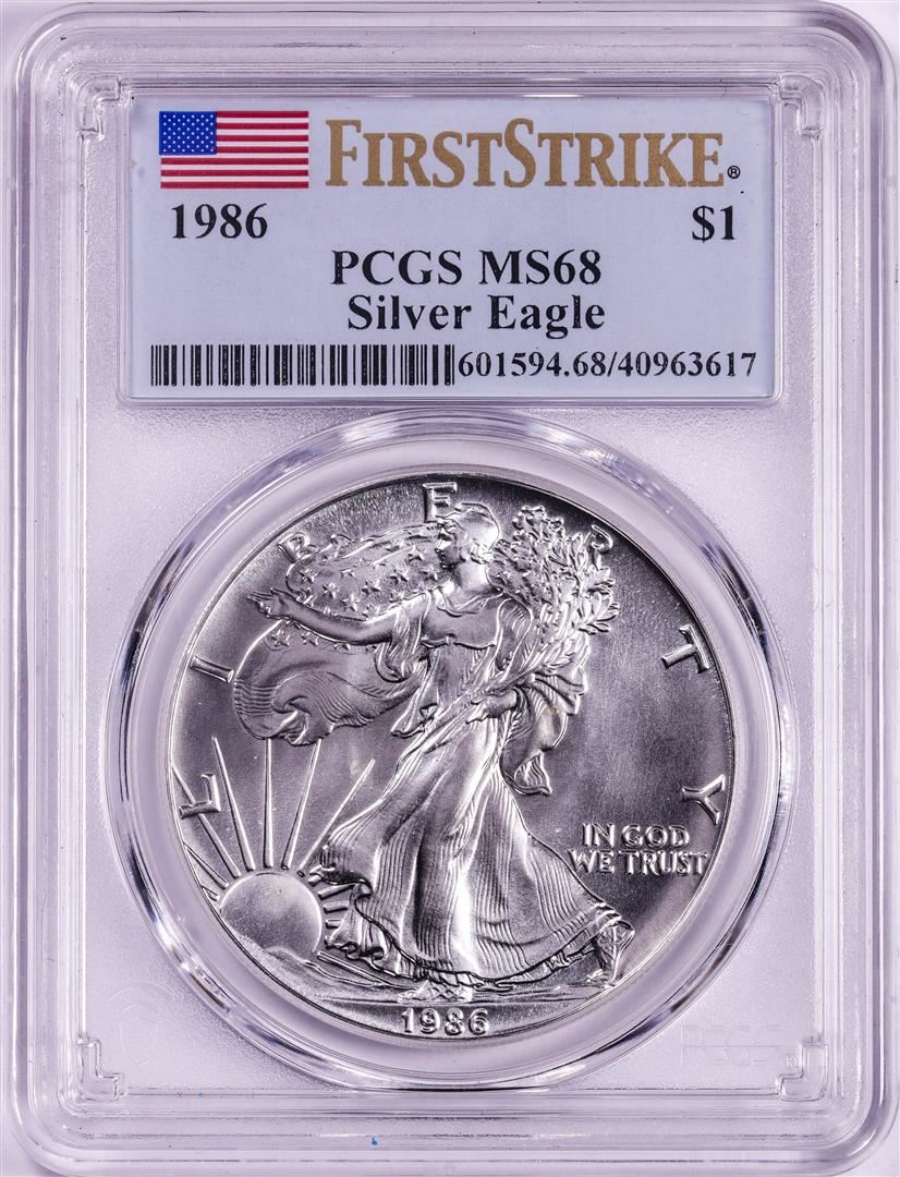 1986 $1 American Silver Eagle Coin PCGS MS68 First Strike