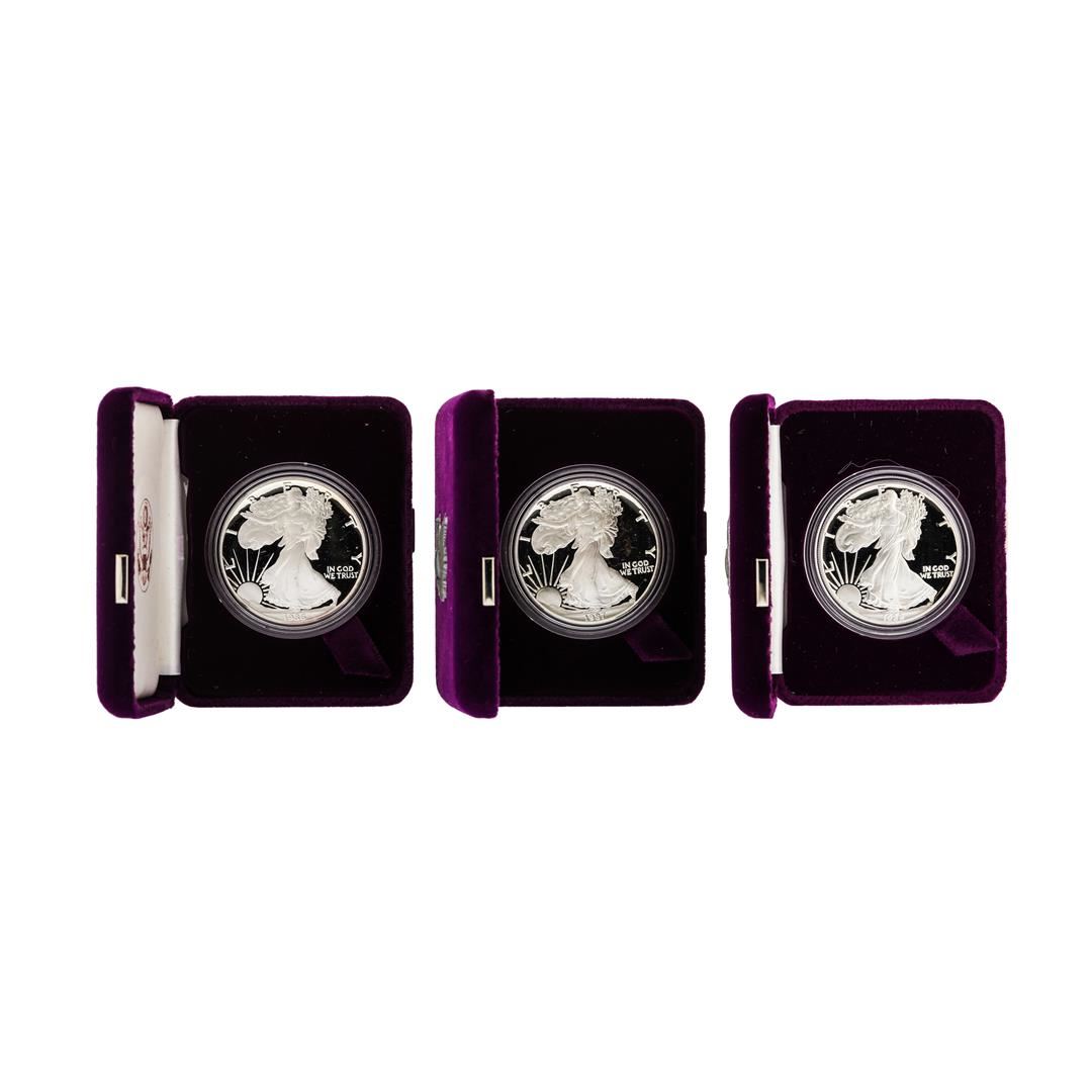 One 1986-1988 1oz American Silver Eagle Proof Coins with Box.