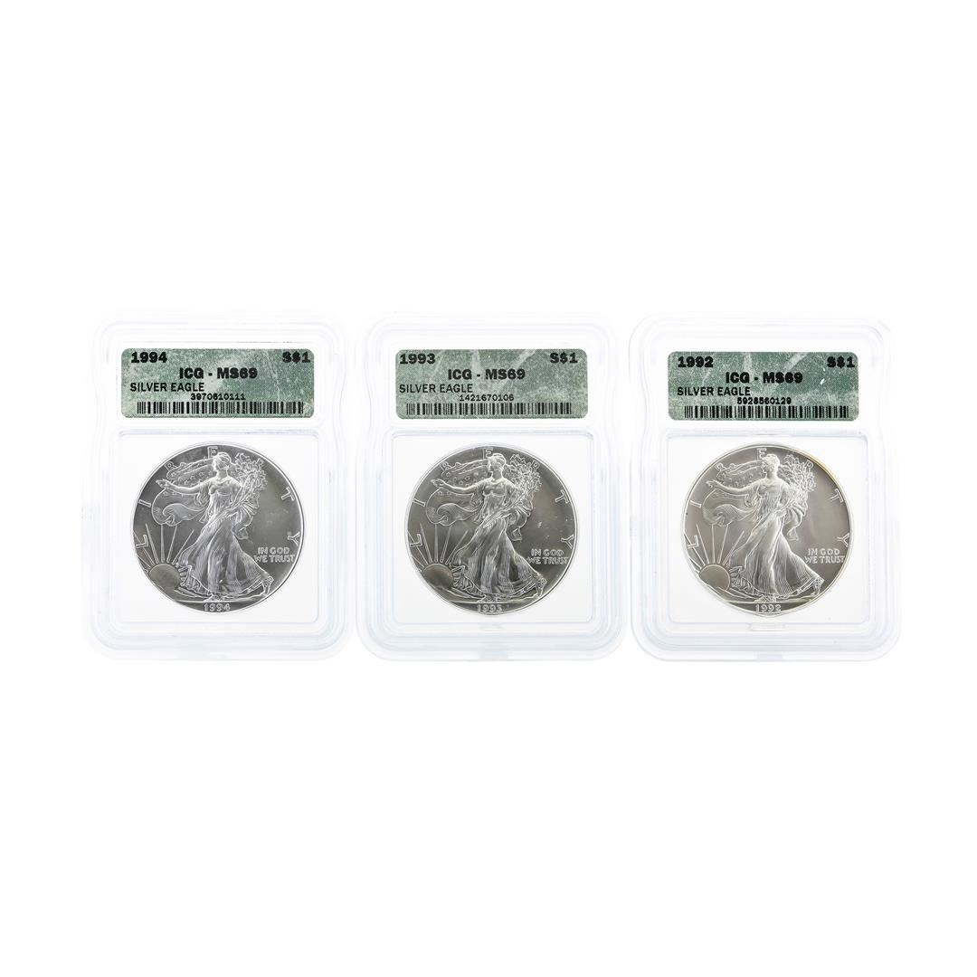 One 1986-2003 $1 American Silver Eagle Coin Set ICG MS69. ICG Certified.