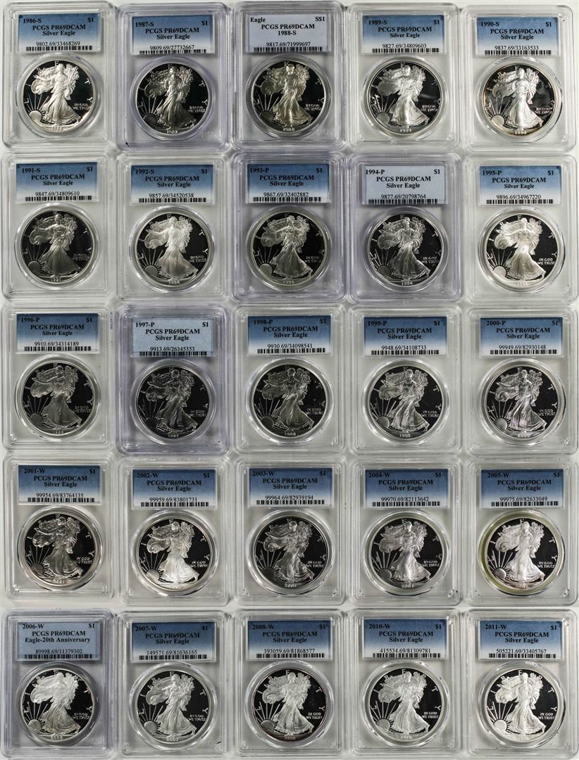 One 1986-2011 $1 Proof American Silver Eagle (25) Coin Set PCGS PR69DCAM w/ Box. PCGS Graded.